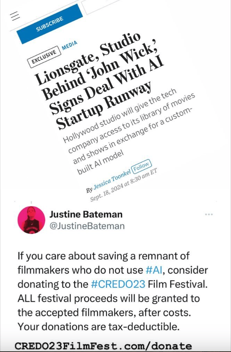 Lionsgate, the studio behind blockbusters like The Hunger Games and John Wick, announced their partnership with Runway, this past week to train new AI models using their vast film and TV archive. The goal? To “streamline production” and create new content using AI-driven tools.
